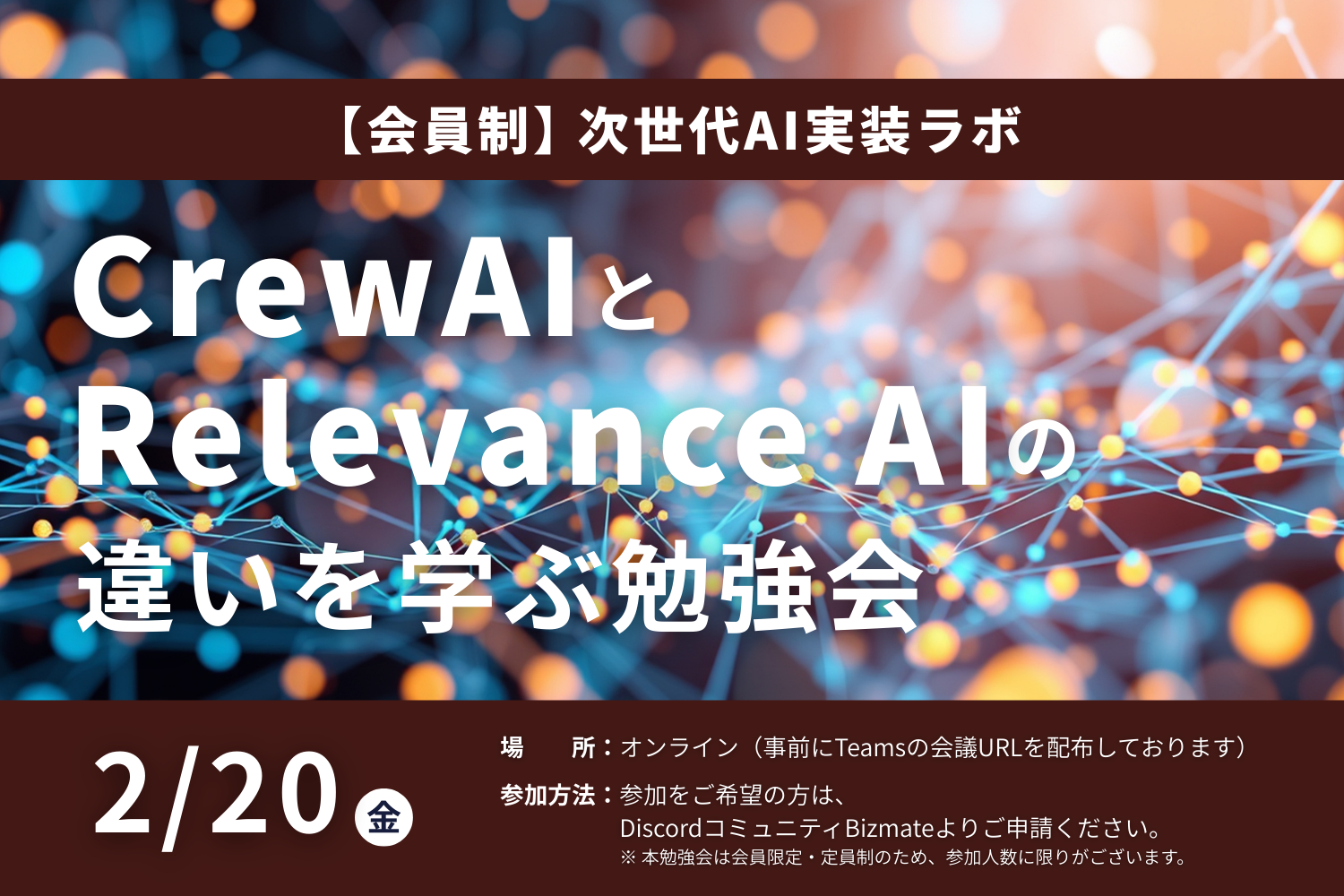 【会員制】次世代AI実装ラボ CrewAIとRelevance AIの違いを学ぶ勉強会を開催