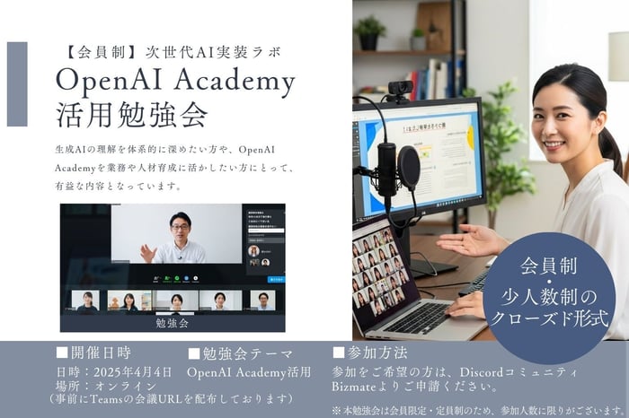 Bizmate は、ICコンサルティング合同会社が 2025年1月から運営しているクローズド型の Discord コミュニティです。生成AIや業務自動化に関する最新情報、国内外のAIサービス動向、実務で役立つ活用事例などを継続的に発信しています。
