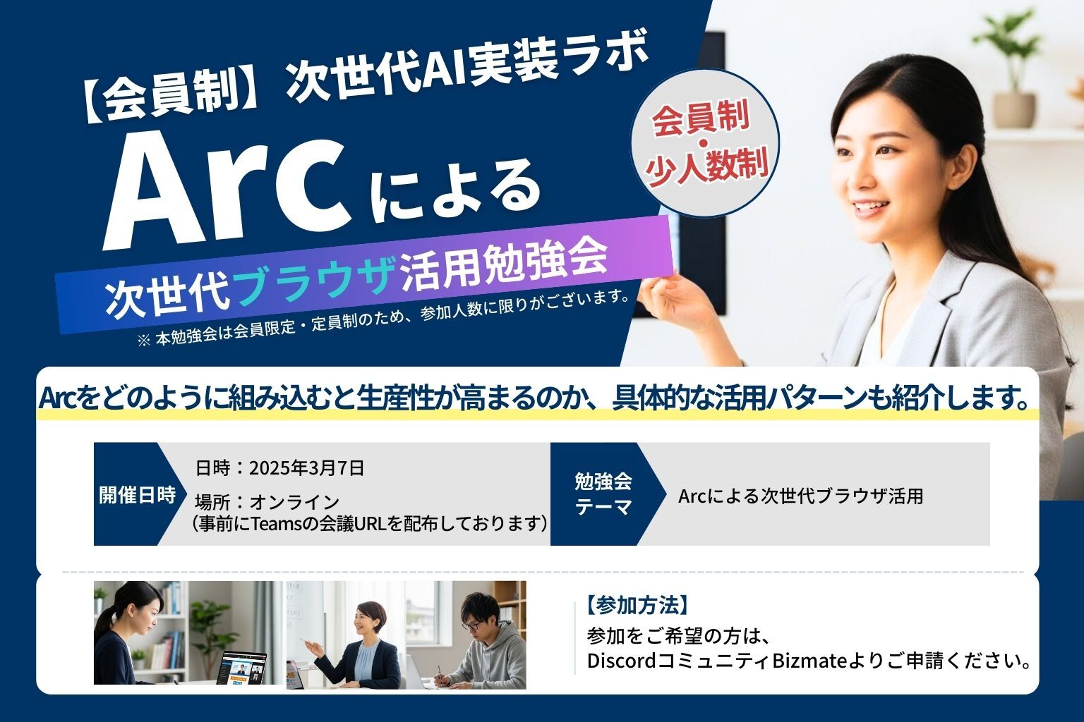 ICコンサルティング合同会社は、会員制の次世代AI実装ラボとして、Arcをテーマにした次世代ブラウザ活用勉強会を開催いたします。